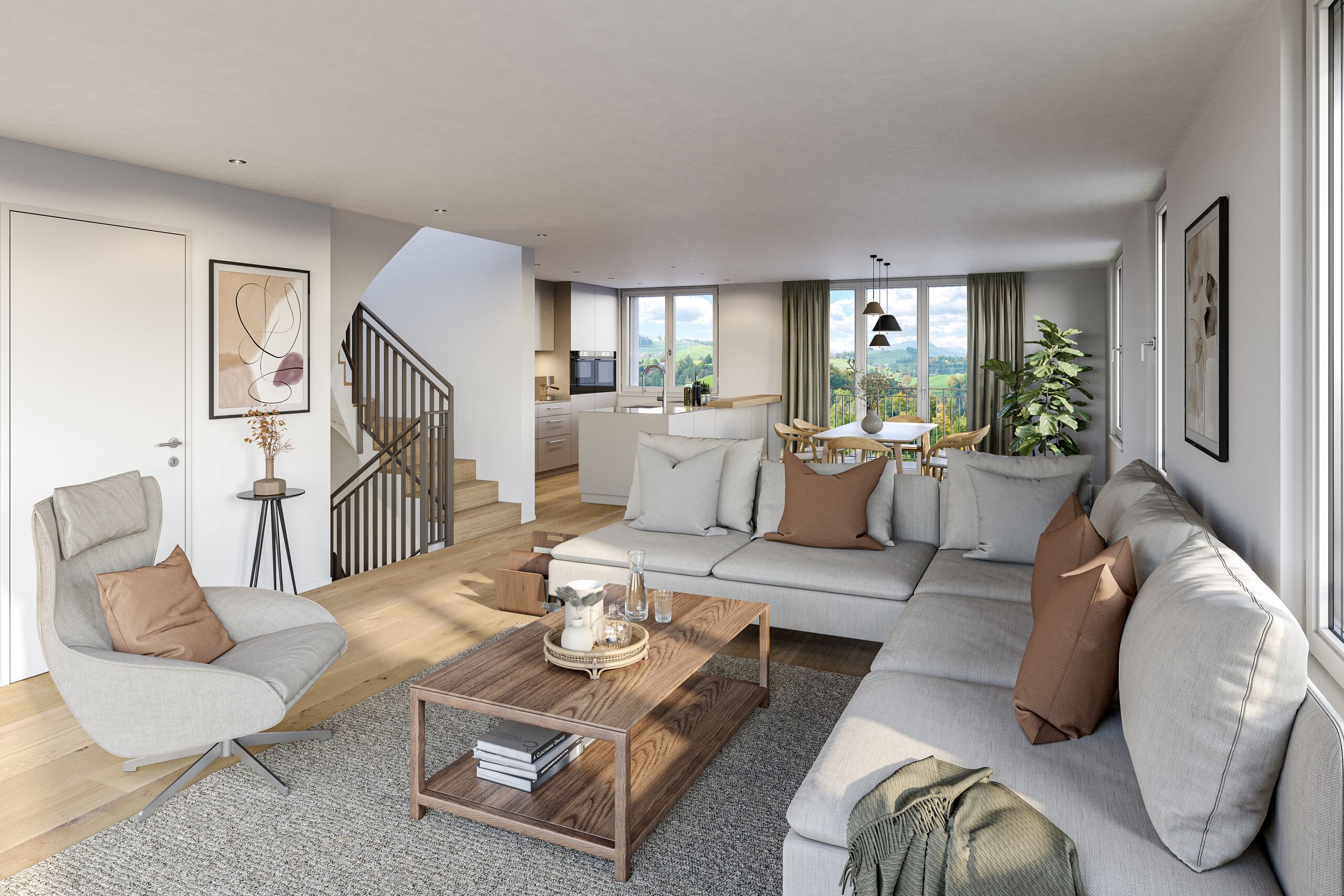 An erhöhter Lage mit freiem Blick über die sanften Hügel entstehen zwei stilvolle Doppeleinfamilienhäuser, die Ihnen beides bieten: architektonische Klarheit und Raum für Individualität und Geborgenheit. Als Familie oder Paar finden Sie hier ein exklusives Zuhause, das Ihnen als idealer Rückzugsort dient und zugleich optimale Erreichbarkeit sicherstellt: Zug, Zürich und Schwyz liegen mit dem Auto nur einen Katzensprung von Ihrer neuen Heimat entfernt.