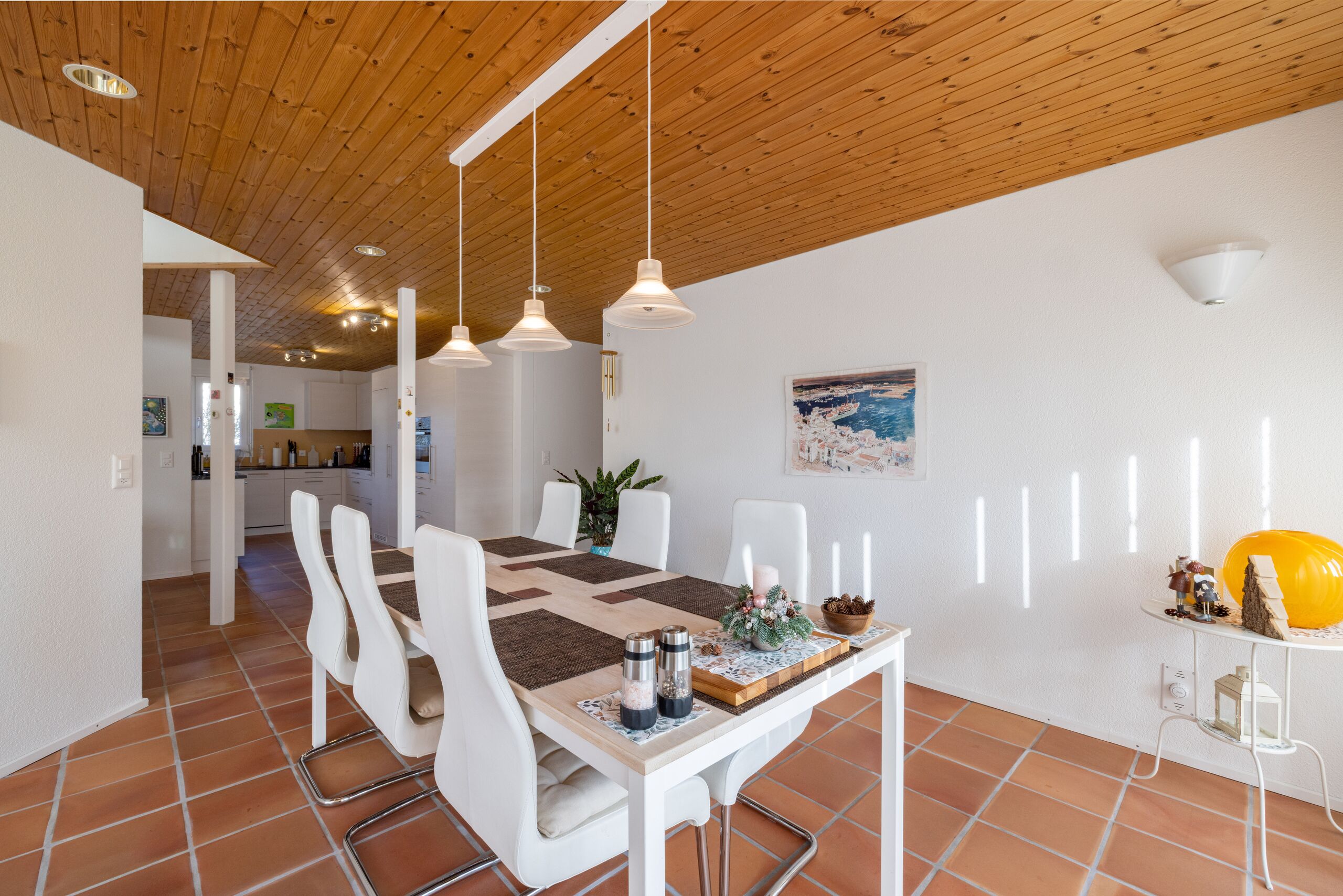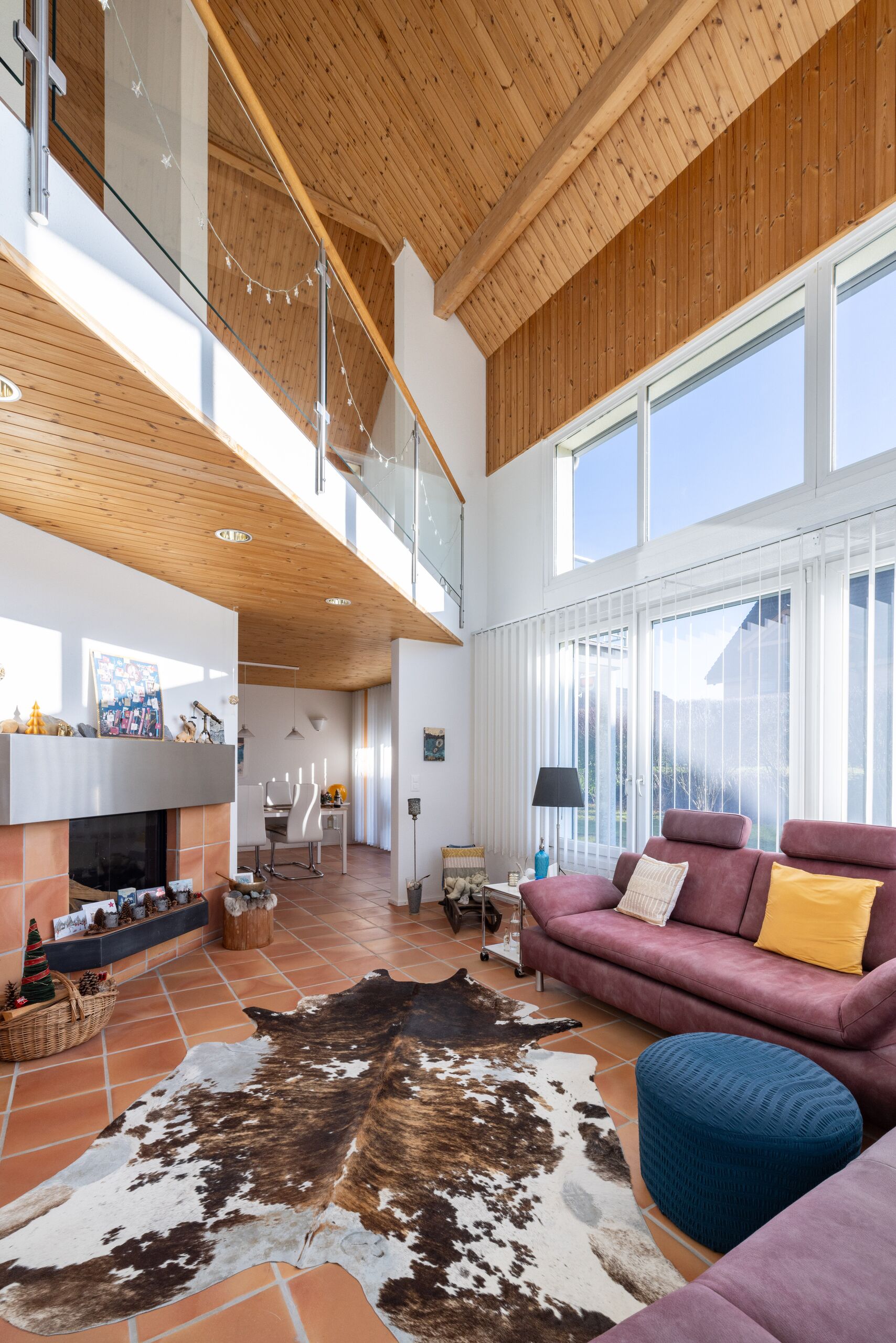 Dieses topgepflegte und äusserst grosszügige 11 Zimmer Einfamilienhaus richtet sich an Familien sowie an Menschen, die viel Raum, Privatsphäre und eine ländliche Wohnumgebung schätzen. Besonders beeindruckend ist der deckenhohe Wohnbereich in Kombination mit der offenen Galerie, die dem Haus ein einzigartiges Wohngefühl und eine aussergewöhnliche Grosszügigkeit verleiht.