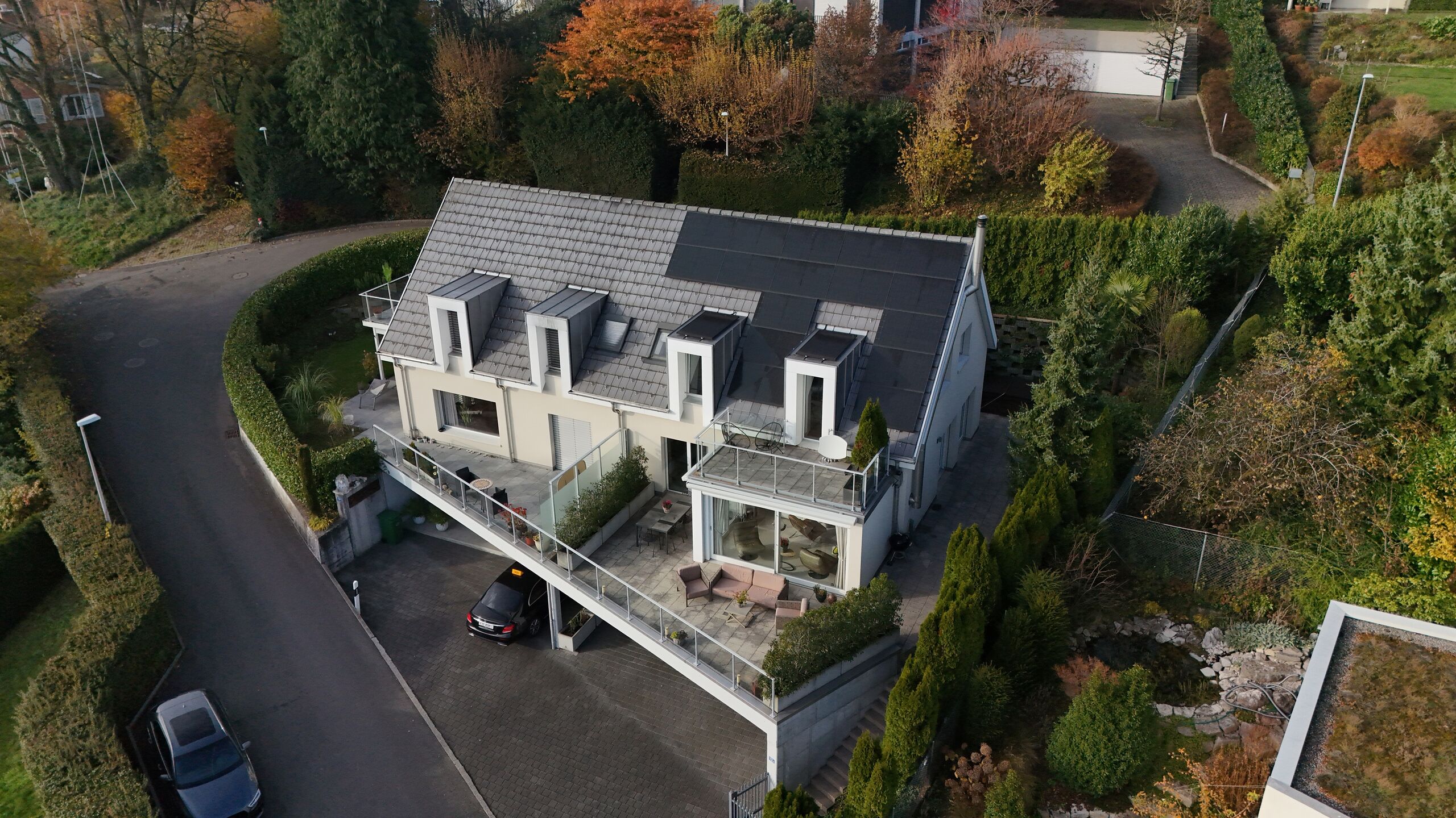 A cosy fireplace, a private sauna, and a jacuzzi add an extra touch of luxury, while a separate studio, a generous terrace, and a photovoltaic system with battery storage complete the offering. Set in a peaceful neighbourhood yet benefiting from excellent access to local schools, public transport, and the motorway, this home presents an exclusive haven that promises outstanding quality of life.