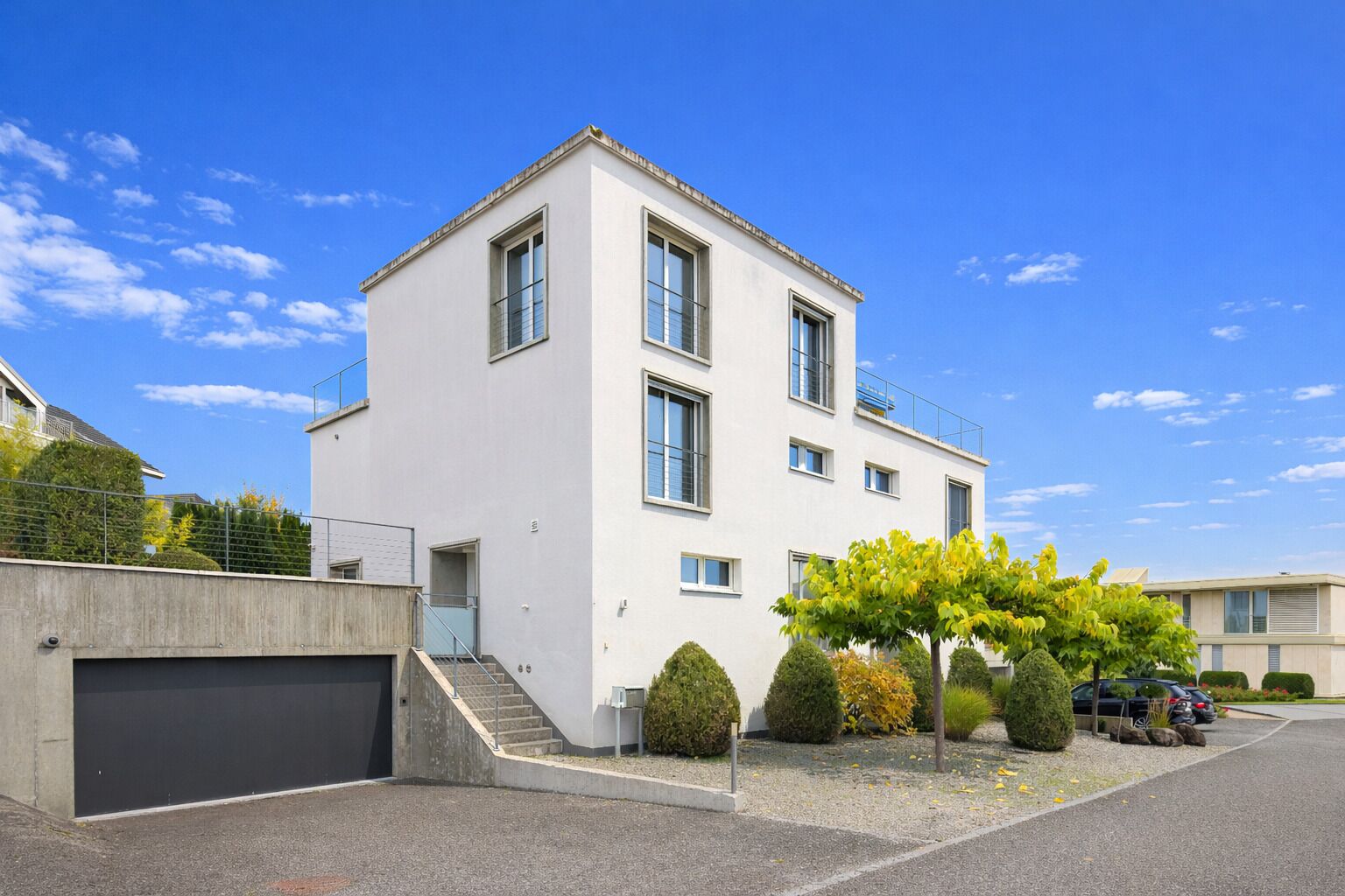 This exclusive semi-detached house in Wollerau SZ embodies modern elegance and timeless architecture. The cubic design gives the building an impressive presence – powerful, minimalist and confident. Spread over four floors, the architectural concept exudes a sense of spaciousness. Step inside and experience modern living culture in its most perfect form.