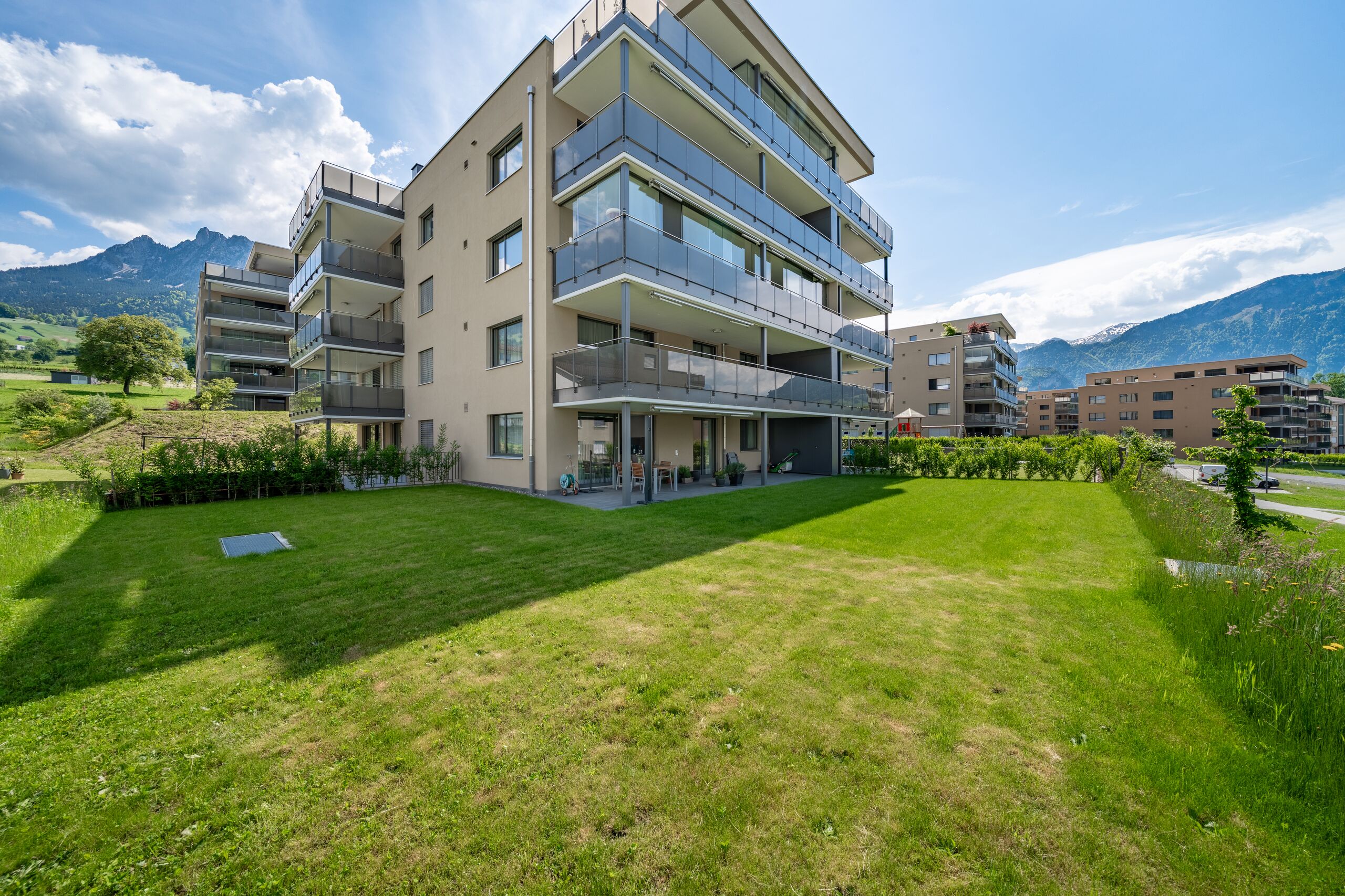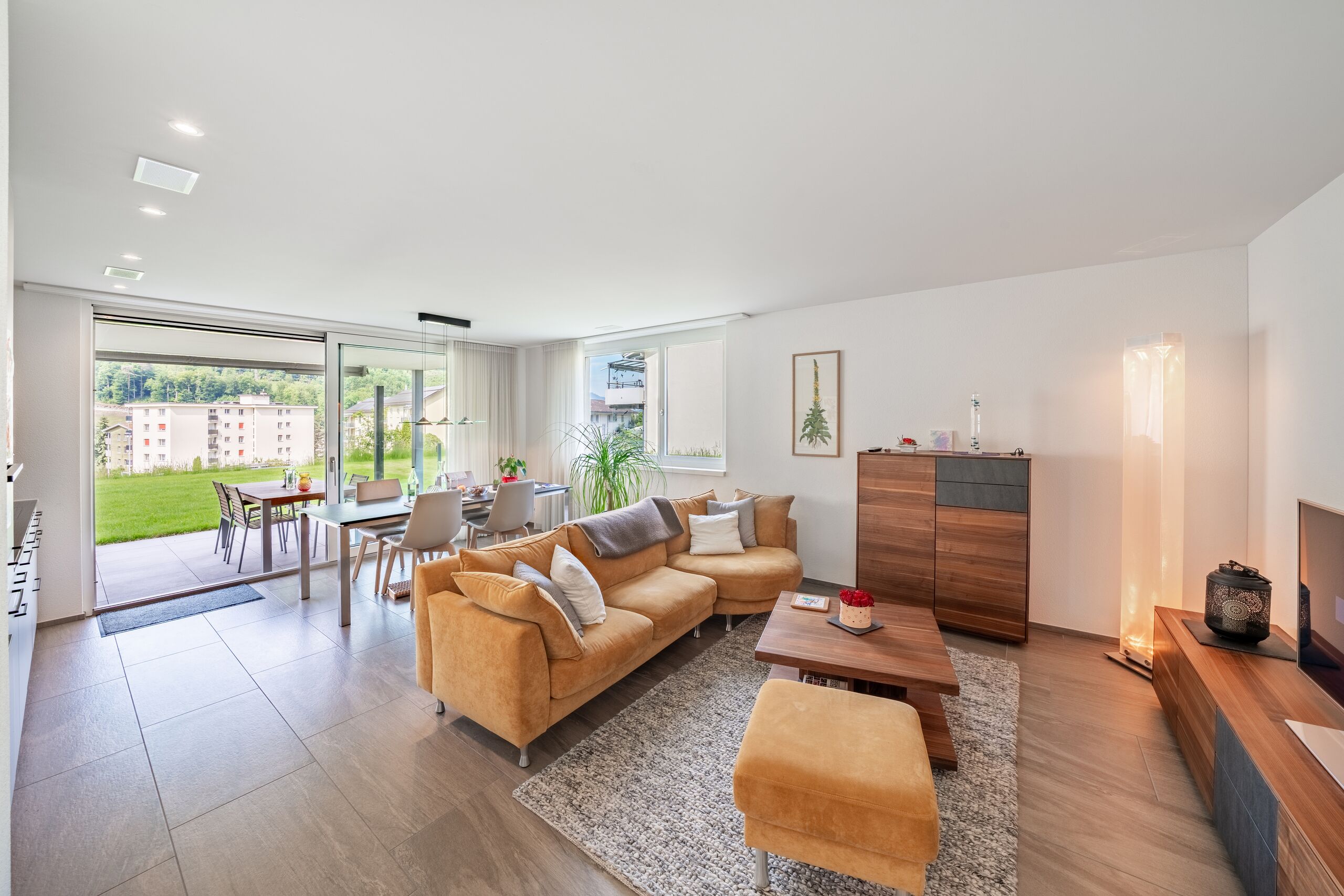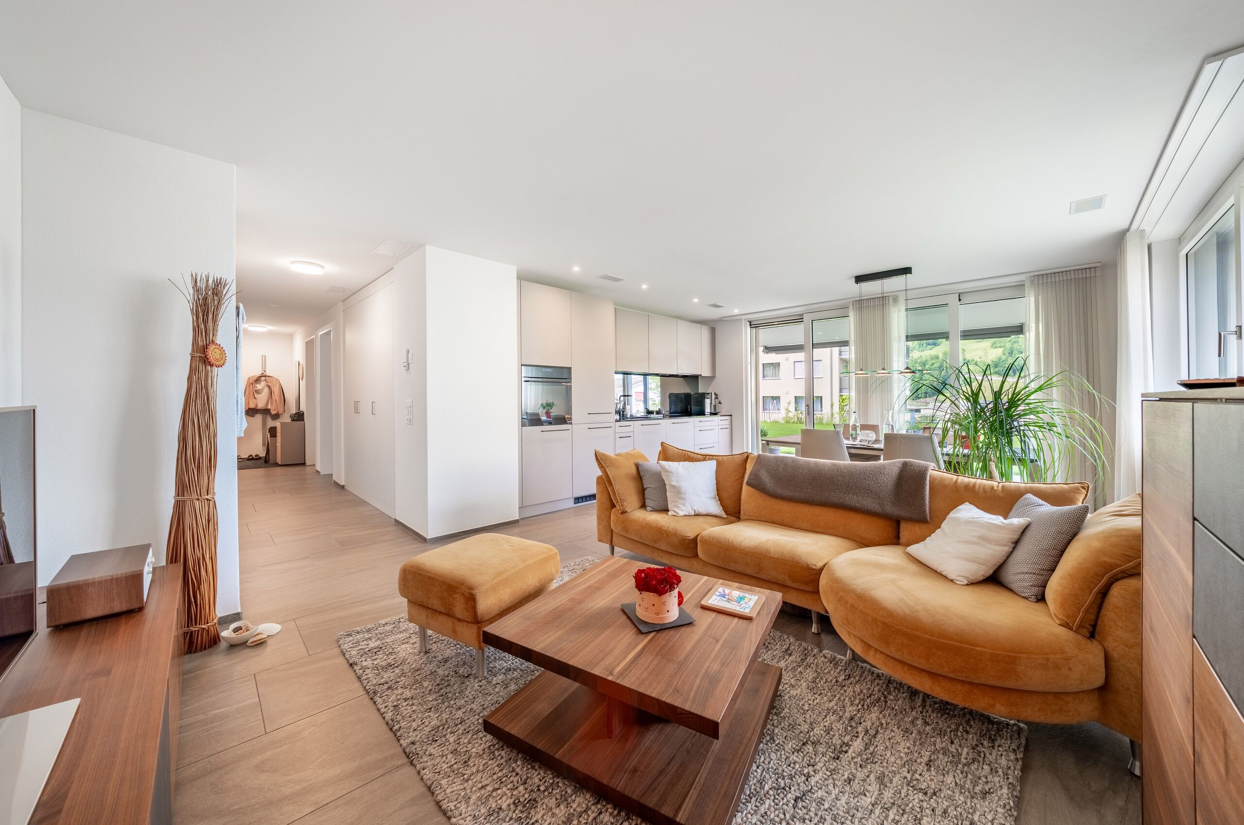 This modern garden apartment combines open-plan living comfort with an exceptionally large outdoor area that feels like a private retreat. A practical kitchen and two flexible rooms create a living environment that is both uncomplicated and special. The covered terrace and spacious garden offer plenty of space for everyday life, relaxation and personalisation.